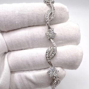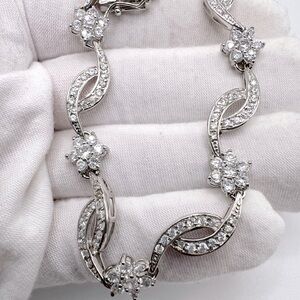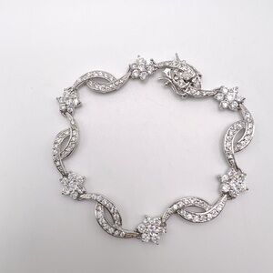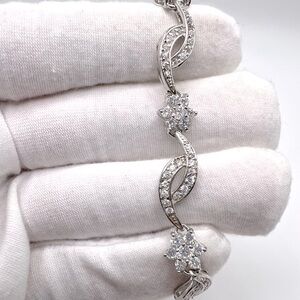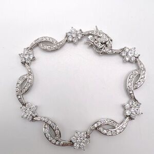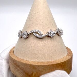 .925 Sterling Silver Clear Cz Flower And Crisscross Design Bracelet
