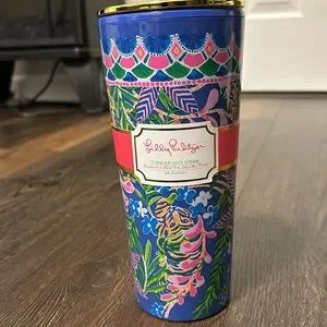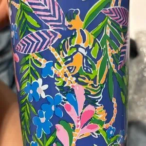 LILLY PULITZER tumbler with pink straw.