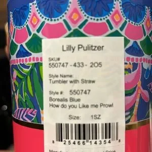 LILLY PULITZER 24oz TUMBLER WITH STRAW "HOW YOU LIKE ME PROWL" New