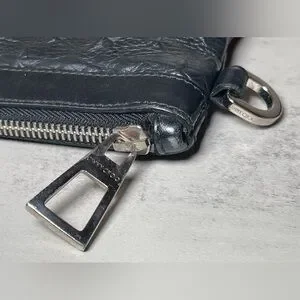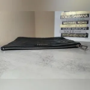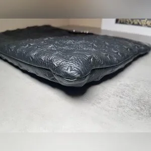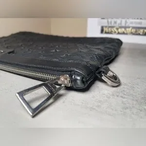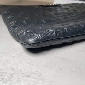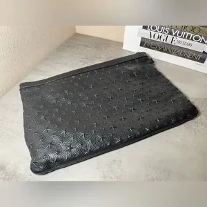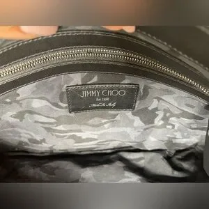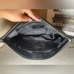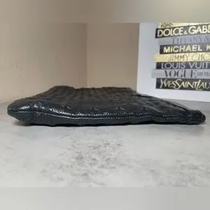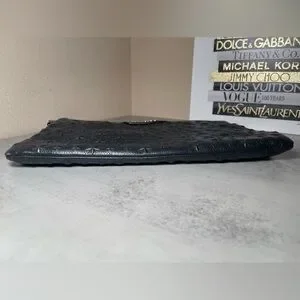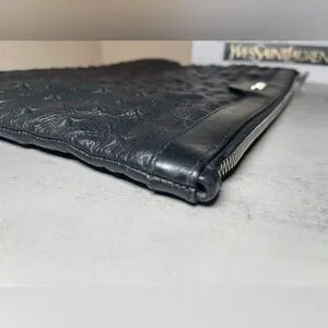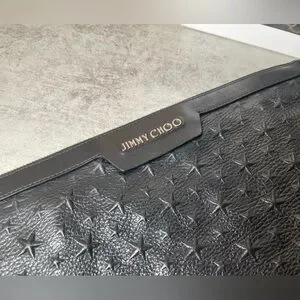 This is a Jimmy Choo oversized black leather star studded clutch / pouch / wristlet. There are rubs in the