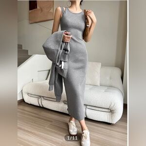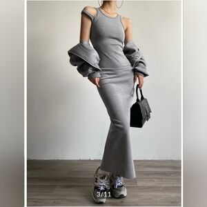 Asymmetrical Crew Neck Split Maxi Dress