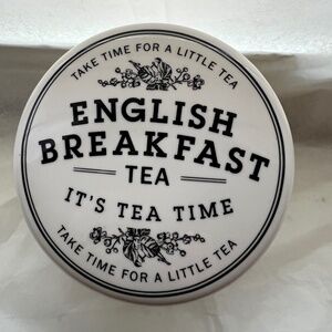 New without tags Creative Co Op English Breakfast Tea Round Ceramic Holder Made of high-quality ceramic material, the lid has rubber seal which keeps anything fresh and airtight. It's in beautiful condition has a unique design for tea storage or just to display on counter.