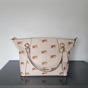 Coach Designer Womens Kacey Satchel Bag With Strawberry Print Purses Totes