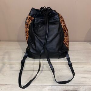 Rag & Bone Grayson Leopard-Print Calf Hair Black Backpack ONE SIZE NWOT