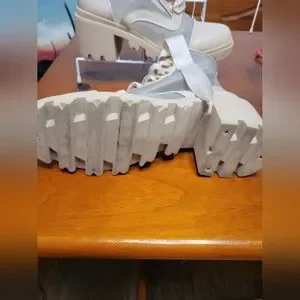 Beige mesh combat boots size 8.5 but runs little small no stretch, small scuffs, only worn like 3 times. send me an offer 😁