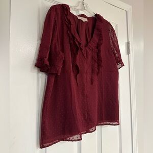 LOFT Clip Ruffle V-Neck Top