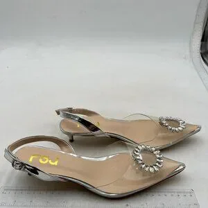 FSJ Women's Silver Heels Dress Shoes Wedding Shoes, Bride Silver Rhinestone