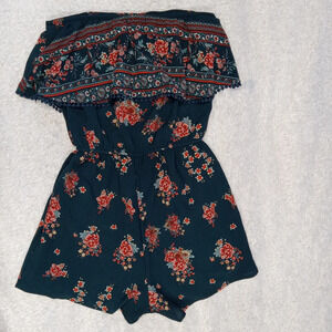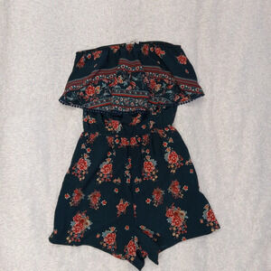 5 for $10 Charlotte Russe Dark Teal Floral Sleeveless Romper Size Small