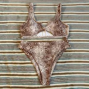 NWT Large Two-Piece Sets Swimsuit Cut-Out Bra Style Padded Khaki