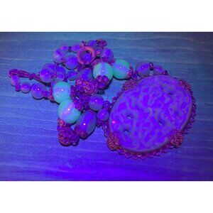 Vintage 1930s Green Molded Peking Glass Beaded Pendant Uranium Beads