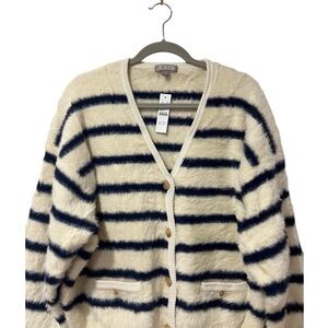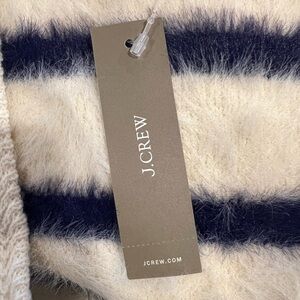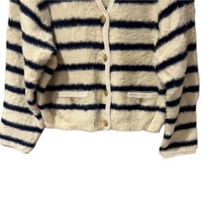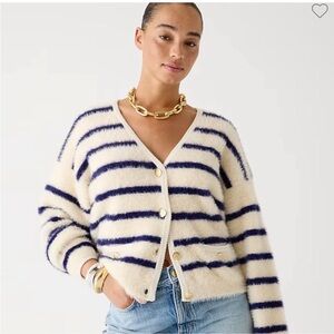 J. Crew Sweater Lady Jacket in Striped Brushed Yarn Nautical White and Navy (L)