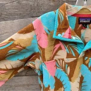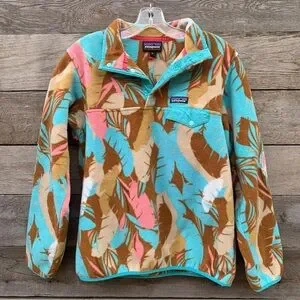 Patagonia Lightweight Synchilla Womens M Snap T Pullover Fleece Feather Print