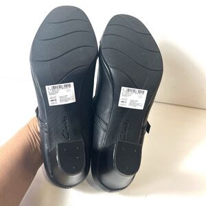 Clarks Womens 9.5W Classic Mary Jane Pump Black Leather Heel Comfort Casual Shoe