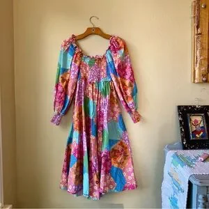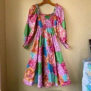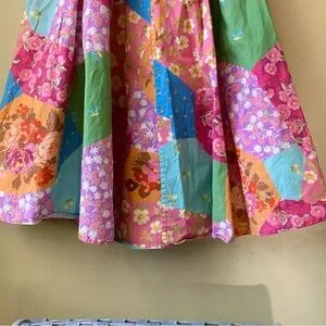This dress is absolutely adorable!! The patchwork pattern on this is amazing. Only worn a couple times.