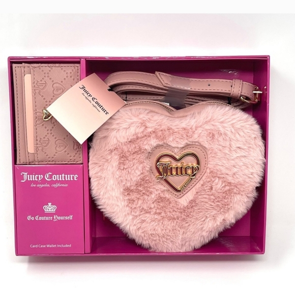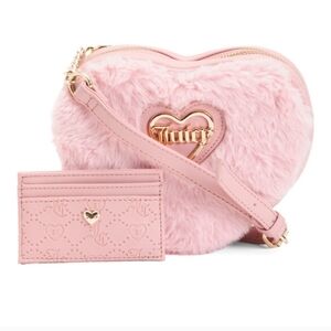 Juicy Couture "Taffy" Heart🩷 Faux Fur Crossbody Purse w/ Matching Card Case