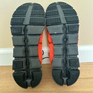 Low-top waterproof paneled recycled mesh, jersey, and canvas sneakers in orange. Reflective trim and logo bonded at sides, tongue, and heel.