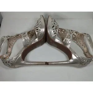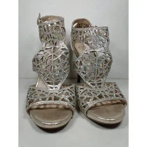 Jessica Simpson Romani Formal Sandal Women's 8 M Gold Cut Out Open Toe High Heel