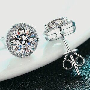 🆕 2.50 Carat Halo Diamond Earring Studs, 18K White Gold Hypoallergenic 🆕