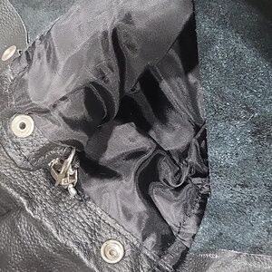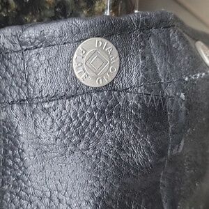 Diamond Plate Buffalo Leather Black Leather Chaps Sz XL These chaps are in good condition. They are made of black patchwork leather. There is a little pocket at the top under the buckle.