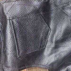 Diamond Plate Buffalo Leather Black Lined Pebbled Leather Motorcycle Chaps Sz XL