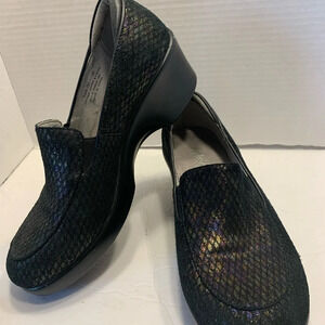Alegria black, metallic iridescent, slip on loafers clogs women’s shoe size 7 great for anyone on their feet all day skid resistant