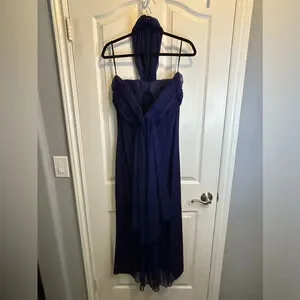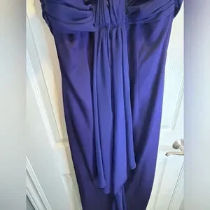 Pre-owned Vintage Beautiful Purple Formal Strapless Dress Back Zipper with Sheer “Chiffon” Neck Button Closure and Trim down the Back and Lovely Sewn-in Brooch Pendant Detail 💜