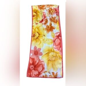 Adrienne Landau Floral Yellow Red 100% Silk Long Scarf in excellent condition no holes or stains