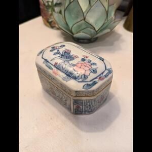Vintage Chinese Trinket Box and Small Bowl, Hand-painted.