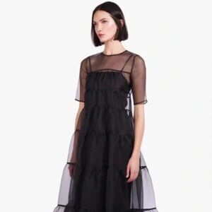 Staud Hyacinth Tiered Black Organza Dress Size Medium