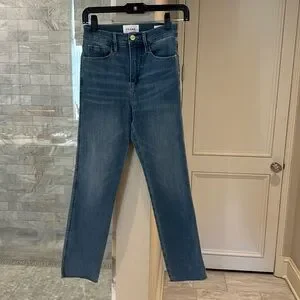 Frame Le Sylvie Crop Jean Size 24 Kirah Wash Mid Blue Stretch Denim Raw Hem Chic. Excellent condition only worn once.