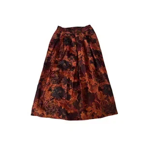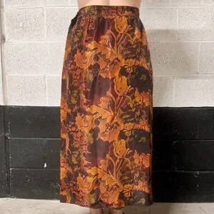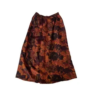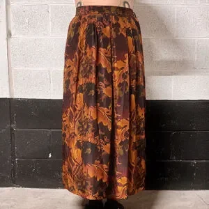 Vintage Silk A-Line Maxi Skirt Fall Flower Print Size L