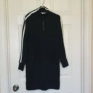 Athleta Circa Black With White Stripes Longsleeve Mini Track Dress