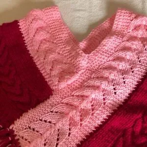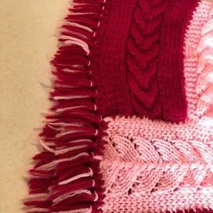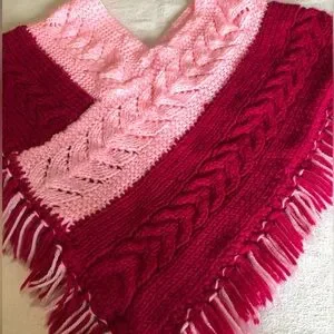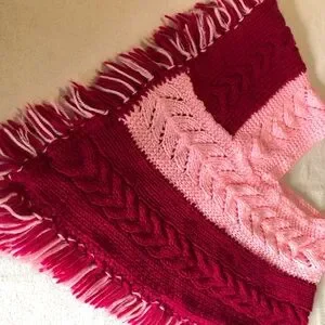 Little girl’s crochet pink pancho, about a size 6 with fringe