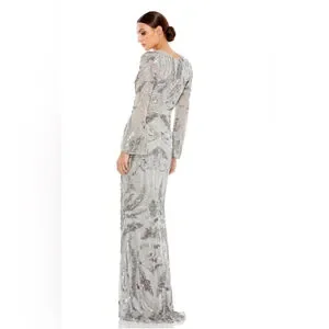 Sequin embellished v neckline evening gown