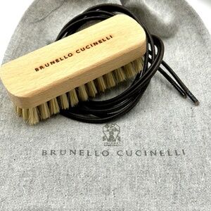 If mens shoes can be described as "cute", these are most definitely CUTE! I LOVE THEM. I think the rounded toe and the soft suede gives them a youthful appeal. These were created in Umbria, Italy by Brunello Cucinelli. As stated previously, they feature a calfskin suede upper with a round toe on a stacked heel. The heel is made up of lugged leather with a rubber outsole. Another attribute that is included in addition to the laces that are on the shoes, an additional leather set in dark brown leather are included. These come in a Brunello Cucinelli pouch along with a suede brush. Two dust bags are also included in addition to a flat, branded cloth to keep the shoes separated while being stored. As always, I include a pair of quality cedar shoe trees as a gift with all my men's shoes.