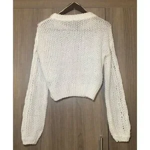 Moon & Madison Womens White Crop Cable Open Knit Sweater Cottage Fairy Layer