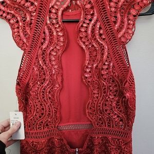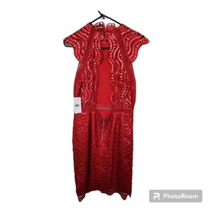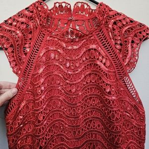 tags: Saylor, anthropologie, anthro, designer, lace, cut out, open back, colorful, red, bold, sequined, night out, date night, special event, formal, elegant, wedding guest