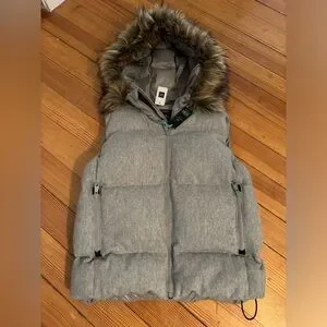 Gap NWT grey Down vest with fur trim. Size Small. So cute!