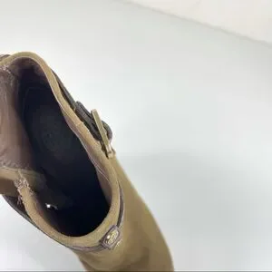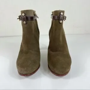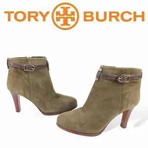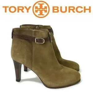 Tory Burch Patricia Mid Heel Suede Zip Up Almond Toe Bootie Ankle Boots Size 6
