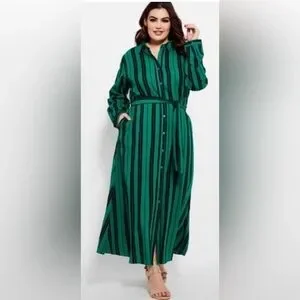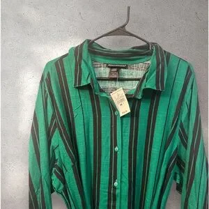 NEW ASHLEY STEWART LINEN BLEND STRIPPED GREEN/ BLACK SIZE 14