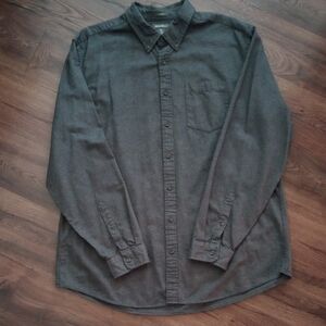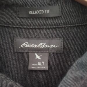 Eddie Bauer Men's Dark Grey Long Sleeve Relaxed Fit Button Flannel Shirt, XLT
