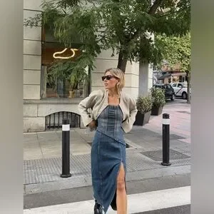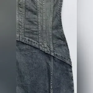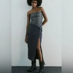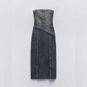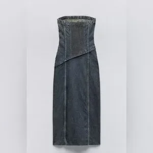 Zara TRF STRAPLESS DENIM MIDI DRESS. Navy Blue. Size XS. New with Tags.