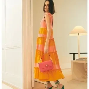 LDT colorblock v neck tiered maxi dress
