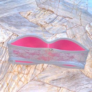 Victoria Secret Pink Very Sexy XS Grey Bra Top Strapless Bralette Lace Mesh