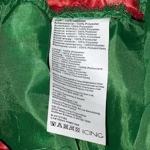 Sequin Christmas skirt from Claire’s. It features tiny gold bells at the points of the red fabric at the waist. Pair it with a pretty top for pictures with Santa or any festive holiday event. No size tag but it measures approximately 12 inches at the elastic waistband but will stretch to a 14.
