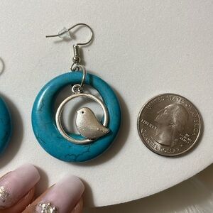 Silver Bird Turquoise Stone Hoop Drop Earrings