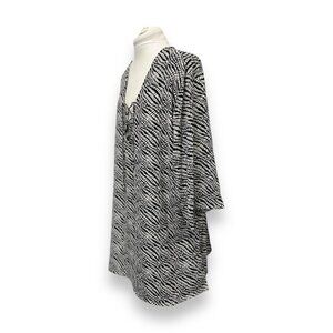 Pacific Beach 3X Black & Ivory Coverup Dress Lace-Up Front Geometric Pattern