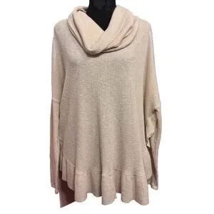 Anthropologie Sweater Large Cream Color Gold Metallic Thread Lagenlook Slouchy