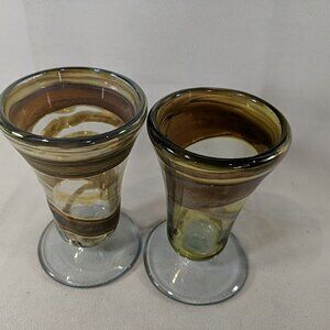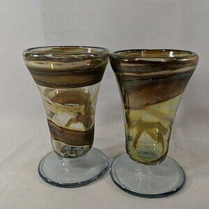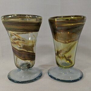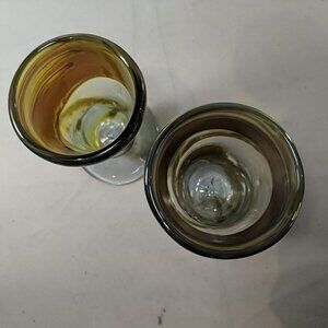 David Paterson 1995 2 Set Art Glass Pedestal Wine Goblets Blown Vintage Canadian
