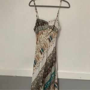 NWT Free People Dress Fiona Patchwork Maxi in Green Beige Print